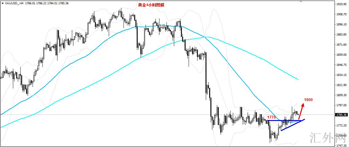 同期4小时均线及布林中轨均拐头往上运行,30分钟级别均线踩着均线MA60平稳上涨。所以,黄金盘中回撤就是持续跟进多单的可能,前期顶底转换1778上,回撤就是多,激进现价1784持续干多,计划1800不变。