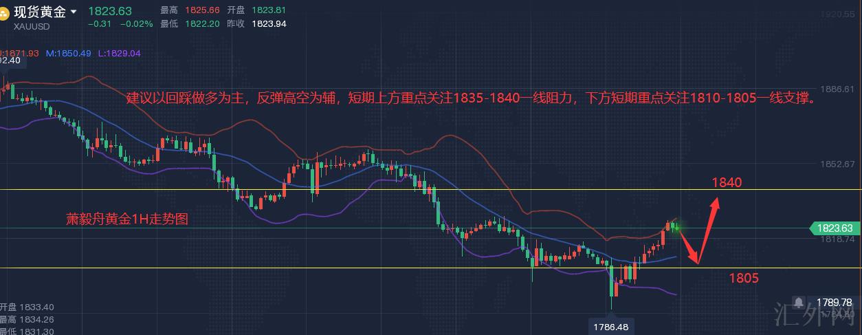 黄金技术分析分析:黄金昨日早盘回弹1817.40一线遇阻,没能强劲击穿上星期五收盘的反抽高位,隔日然而上一日的收盘高。短线则会先驱保持下探。早盘在1818以下遇阻后面,盘中临盘调动了一下思路。在跌穿了1808后面直接在1806-1807跟进了短线空单下看1796-1790.看了一个惯性的摔低。也是顾虑到周线的收低,这周先会惯性的保持。当前1小时图是处在低点第三次摔低,要留心该种低点摔低后的节奏,伴随一个低位一个反抽。也就是形成三重低或多重低后面,指标无力创新低,短线会伴随修正。故低点买跌单,摔低后要把握及时减仓或落袋。既不踏空行情,也然而分贪恋。当前结合4小时的下探通道靠近了下缘支撑处,或许虽在反抽,尽管当前还不能说是止跌,但盘感上来说,短线或许有回弹修正。故当前位置暂可官网,启稳后短线不消除会试图看回弹。综上所述,今日黄金交易参考上萧毅舟推荐以回踩买涨为主,回弹高空为辅,短时间上方着重注意1835-1840一线压力,以下短时间着重注意1810-1805一线支撑。