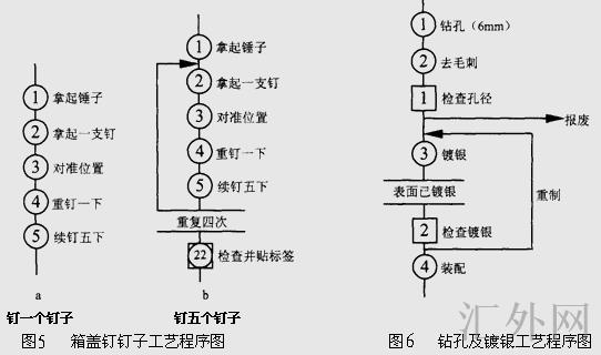 比如图5所示的箱盖钉钉子工艺程序图以及图6所示的钻孔及镀银工艺程序图。