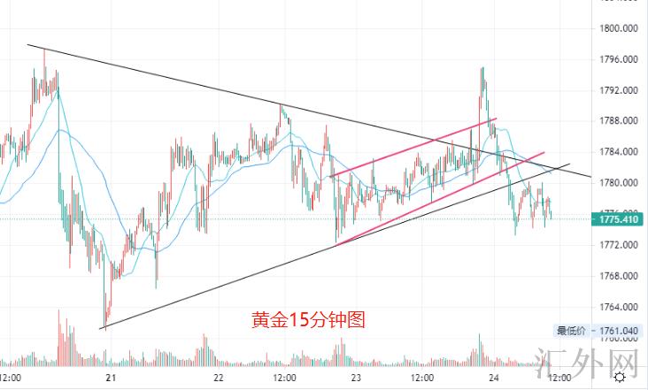 这个困难其实已经在昨晚的视频当中已经给出答案了,那就是黄金又一次回归短时间上升通道或者说是三角形态当中,我们是要在回弹到上沿部分后执行空单操作的。当下黄金价格已经回归通道已经三角形态的下部了,无论是上升通道下沿也好,三角形态下边也罢都形成了对黄金的抑制,对我来讲,这就是一个黄金弱势的状况,假使从更大的4小时时间周期级别看,昨晚黄金上冲后又被拉回就是一根锤子线,这显著就是黄金卖方在上方的强力婉拒。