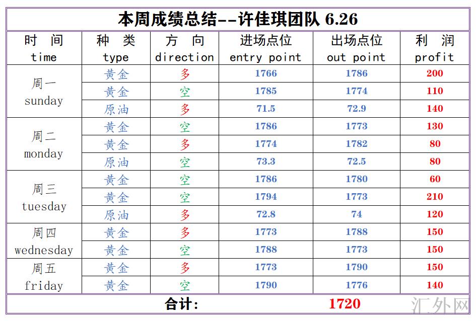 周归纳--佳琪团队这周布局13单全胜获利1720点利润!
