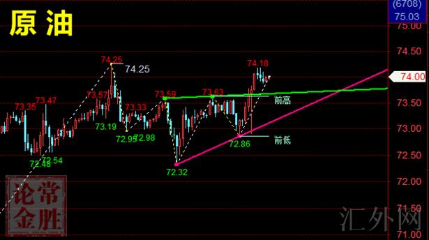 原油层面:星期五原油价格日K线微跌,然而由于WTI原油库存下滑和市场押注需求上涨料胜过提供上涨,短线原油价格仍有适当的上涨空间,但是同期市场易承受美元强势预计的影响,而选择在高点止盈出场。所以临时原油价格先看高点震荡行情。技术MACD死叉保持,绿色量能柱削减后面再次放量,RSI震荡下探;技术指标和行情有所背离,短线行情或许冲顶回调,在更深一步持稳74整数关键点位以前,综上所述常胜论金归纳:上方注意73.5-74.0一线压力,以下注意72.5-72.0一线支撑,下周操作上斟酌回撤布局多单为主,回踩72.5-72.0一线持稳多,计划看73.5-74.0,突破向上瞧,止损0.5美金;