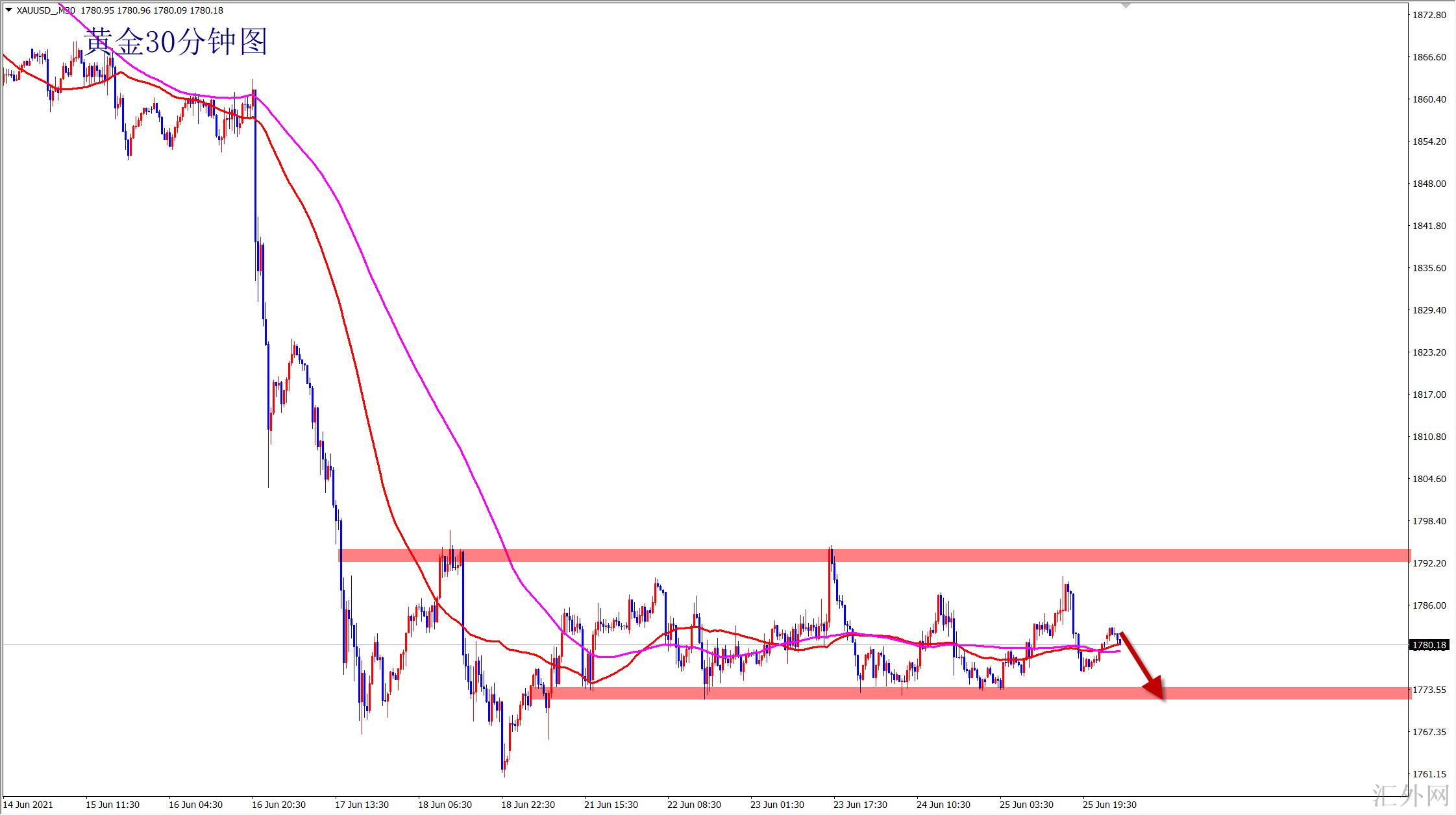 黄金目前虽是震荡整理,但是回弹显著无力,上方阻力显著,而且黄金整体上是属于趋势下挫行情,横久必跌,突破导致时间困难!目前黄金已经开始下挫,一旦突破1770的支持,起码要再探1760前低,甚至是突破下挫!