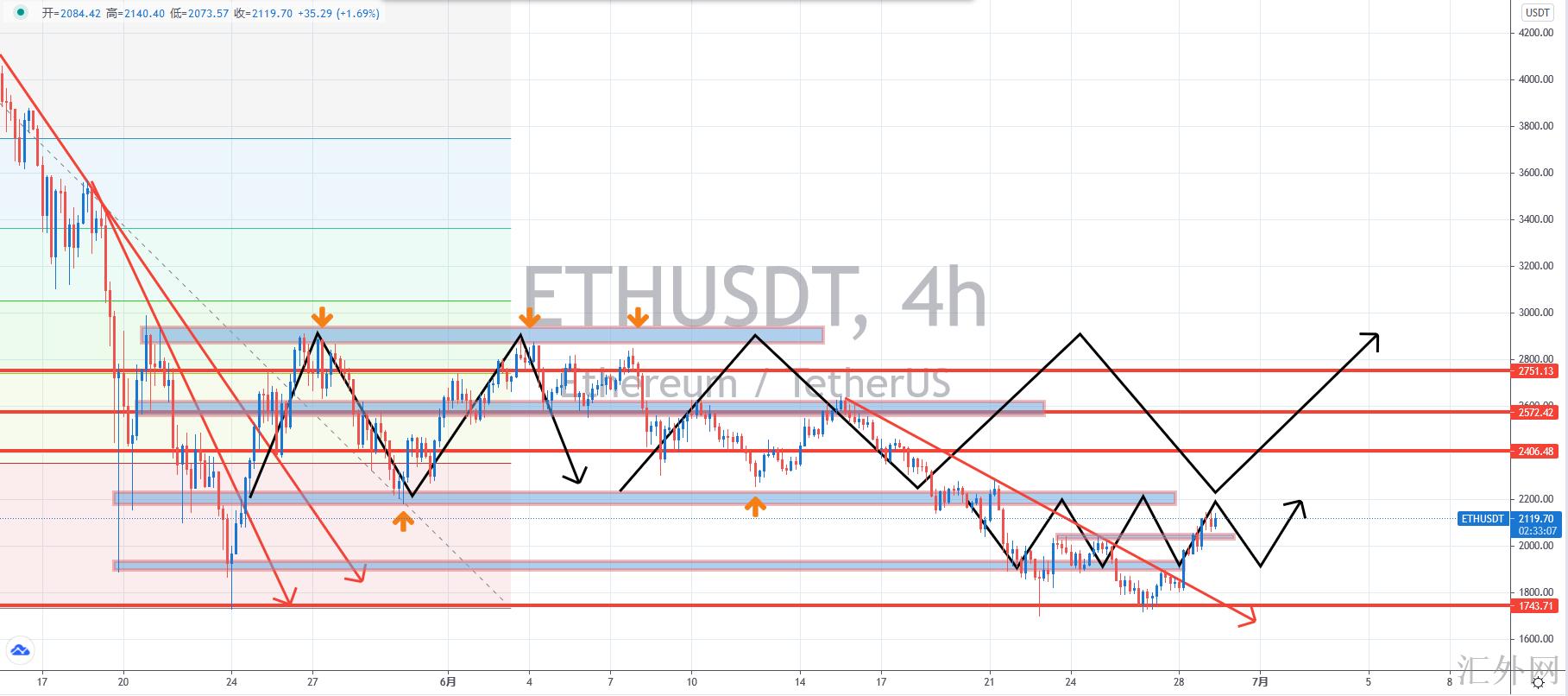 【技术点评】:H4周期,以太坊试探前低后开放窄幅震荡模式,短时间大约率持续维持震荡。