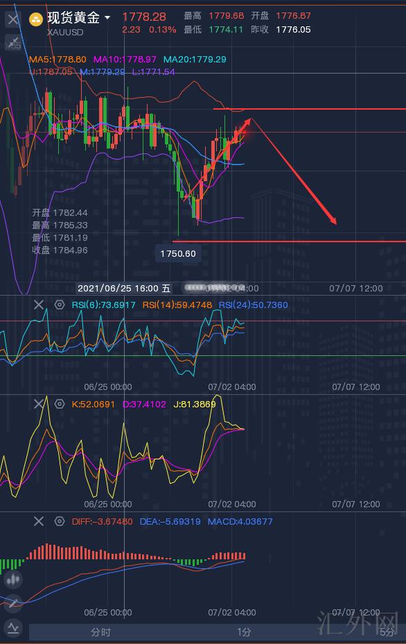 7.2黄金策略:1、激进派1782-1784买跌;2稳健者1790-1795买跌;3、稳健者1750=1755买涨!