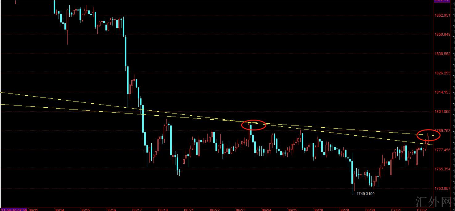 4小时级别布林开口行将打开,小时线级别买方信号愈加明朗,所以,今夜的思路就是回撤多,非农就业报告或许短线回撤一下,但是在趋势面前,报告的影响有限。技术上大家注意不要追多,上方1790一线是趋势线的强压力,也是周线强压力位需求回避下。