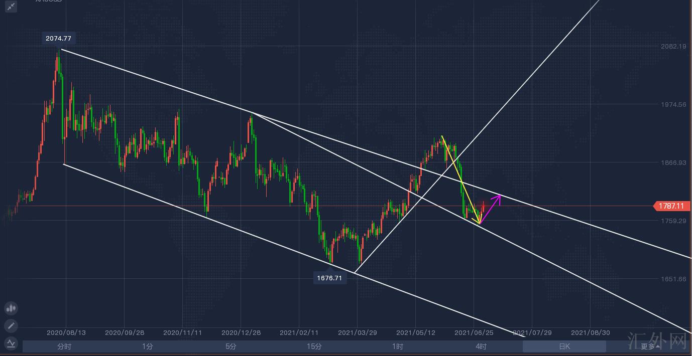 黄金技术分析上分析,黄金星期二暴跌刷新1750一线位置后走回弹,短时间形成双底反转形态,结合这周后面几天的上涨,底部形态已经逐渐构筑完成,也表明黄金技术分析上短时间风险偏上涨;星期五收盘在1787一线,短时间仍有持续上升的区域;