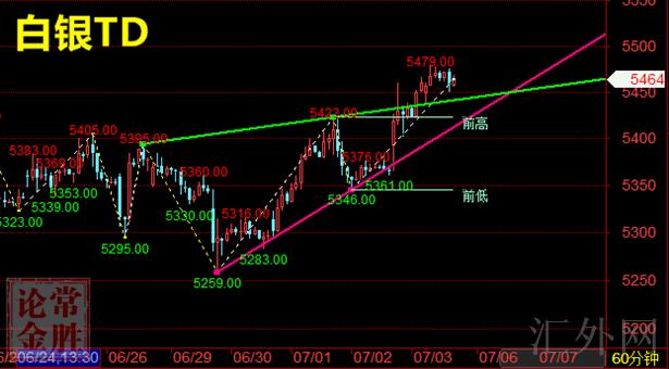 综合分析:白银td短线来说,愈加倾向震荡往上,买方有上冲的欲望和活力,但日K线60均线则可看为短线阻力参考,日间无巨大消息面,所以60线可以短线参考,击穿,则注意5580-5600左右。
