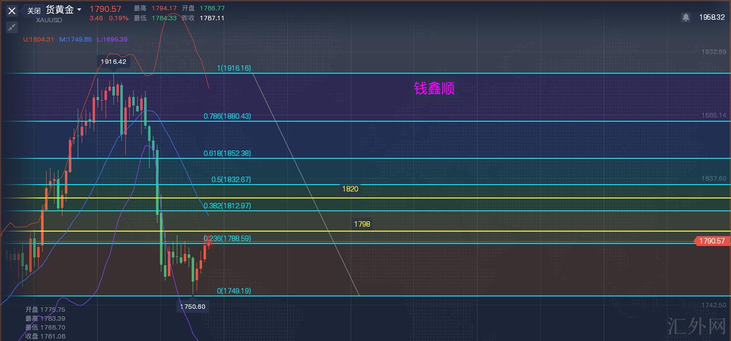 黄金当前假使从日K图来说,1795-98这里就是日K图的抑制点,假使黄金想成功买方登基,那最起码要立住1820上方,才会跌转涨。