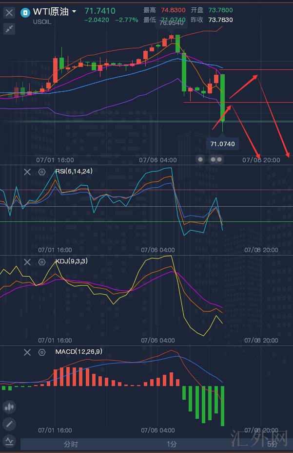 7.7原油策略:1、稳健者回弹73-73.2买跌;