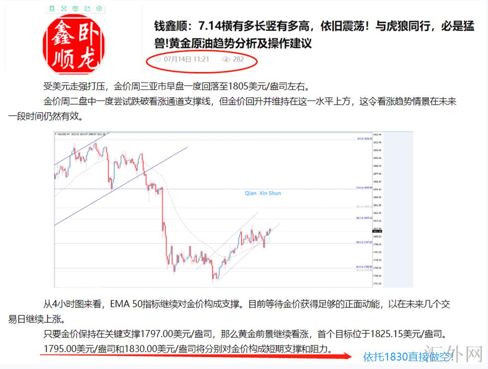 在7.14昨日的文章中,我也给大家分析表示了黄金以下短时间支撑1795跟阻力1830。果不其然7.14夜里刷新我文章所给你们提及的1830左右已2美金防守止盈1820一线持稳反手开多单看上涨!计划1825/1830,突破持有!跟上的朋友已经很鑫顺斩获80/90个点,持续等候多单上涨达到50个点以上利润即可!(1820多单浮盈中持续向上瞧)