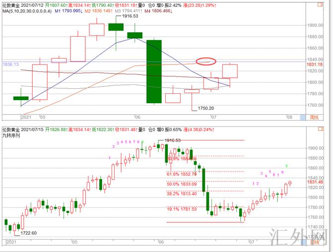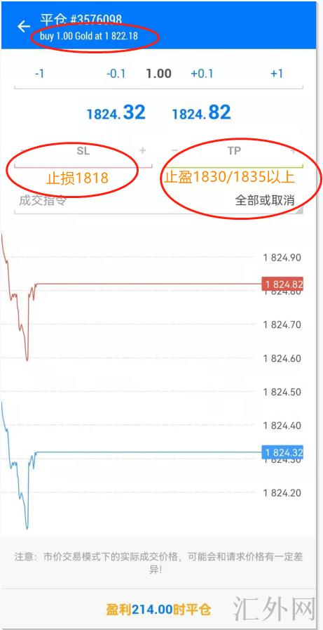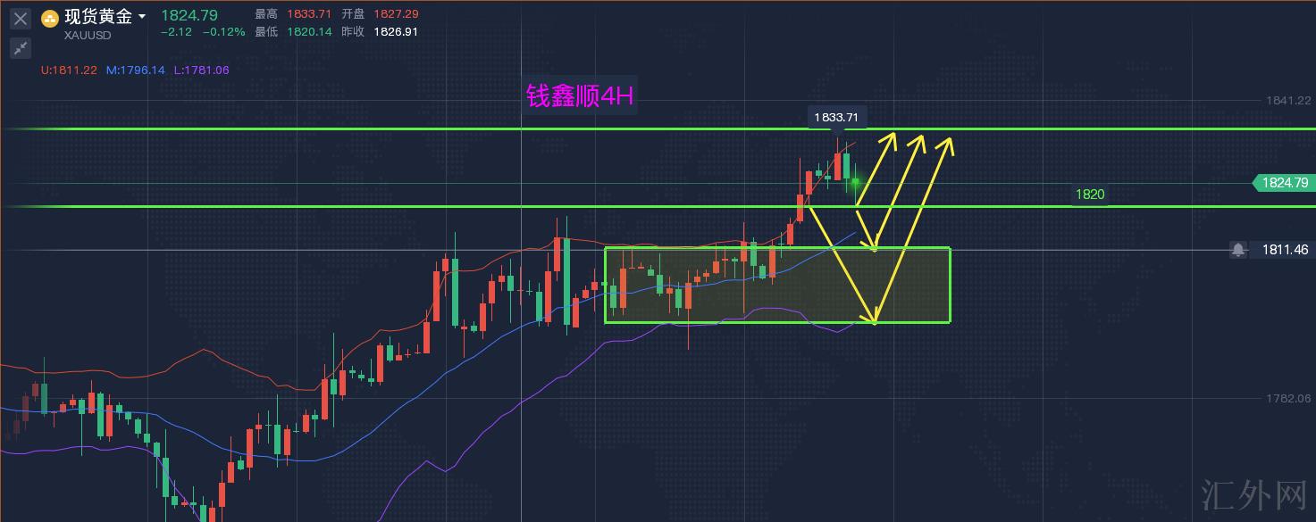 【早间依托1830不破情形下我们隔夜1820多单止盈1828,短线反手1828持稳一线买跌通告1823左右出局,鑫顺今日文章中给到空单回踩的多单区域就在1820-1823!1823一线持稳就进场买涨,欧盘到来前1830突破。在此持续补仓多单,上方的高位位置1835左右恰好是处在周线MA10均线的位置,由于1834左右不仅是周线的抑制点,而且依旧日K线50%分割线的位置,可以确定1833/1834左右持稳不破这里存在卖方下来的风险!在此多单止盈出局,无疑是反手布局空单的机会,美盘时段止盈1823左右】