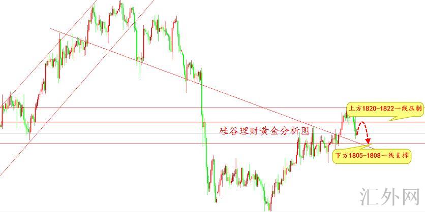 黄金操作:回弹1820-1822一线买跌,止损1829,计划1805-1808一线;