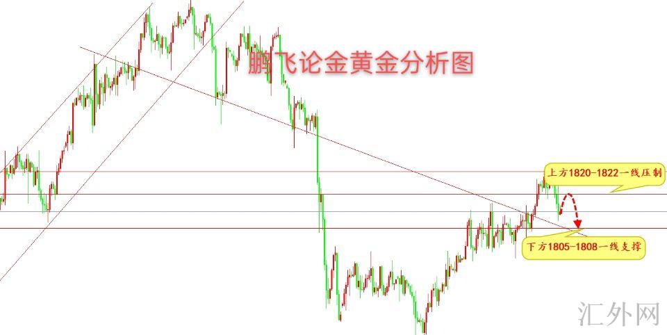 黄金操作策略解析:回弹1820-1822一线买跌,止损1829,计划1805-1808一线;