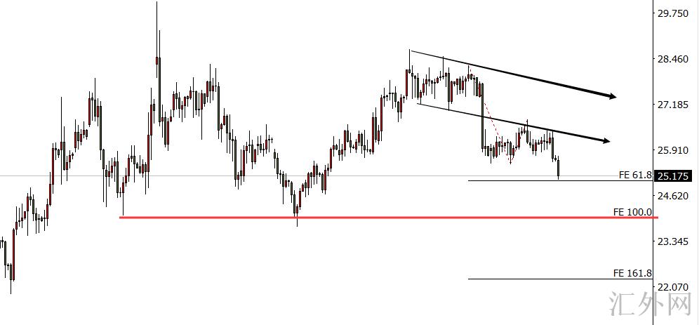 那何时才到位?依我看来它们两者的震荡是如此的,要么黄金就一直涨,连续到动员白银觉醒上拉,要么就跟着白银持续朝下挫,反正黄金在这以前已经距离底部有不少空间了,这段银价下探的100%支撑点置就在24左右,到时我们再看市场环境有没有潜在力量,简单解释就是在那以前市场要迎接巨大报告或者消息面,再做押注。
