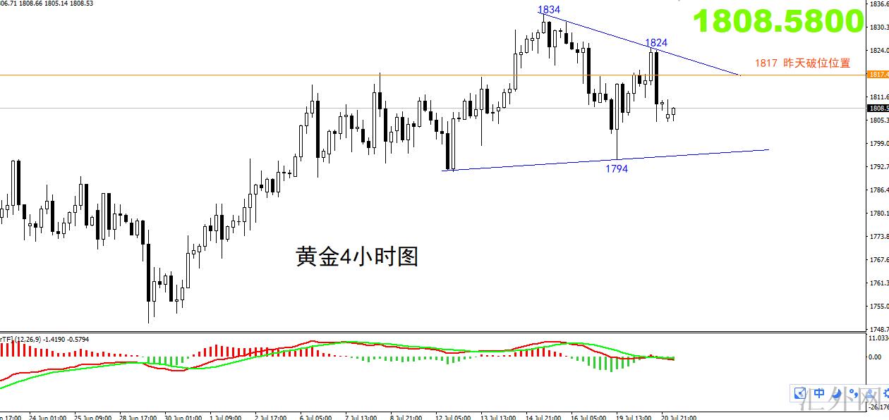 对于今天来看,日K线思路临时保持不变,看1834-1794的区域,然而从日K线当下的k线形态层面,更倾向是头部反转,预期的突破时间大约在周尾,到时候再更深一步证实,日间再从新回归1820上方的几率偏小,4小时指标偏震荡,短线k线形态更倾向震荡下探,日间预期将又一次试探1794,短线压力注意1815左右,日间看区间1815-1794.
