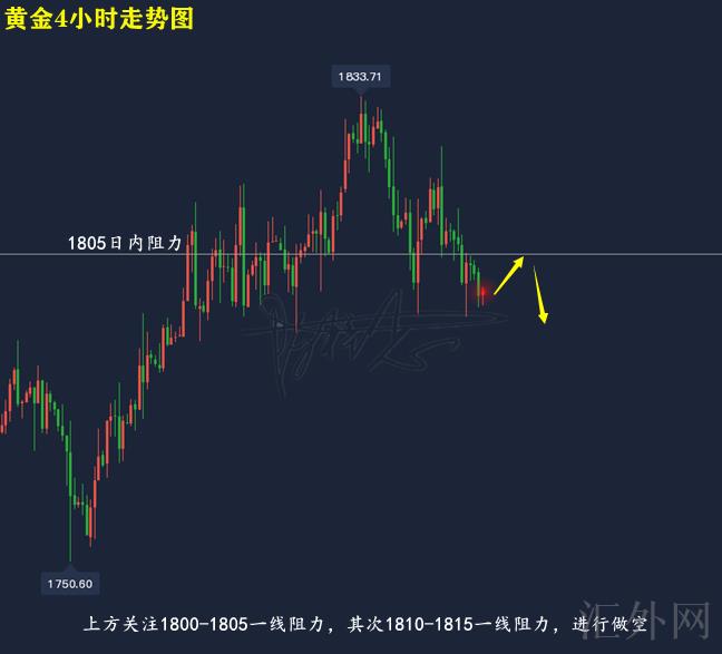 1800-1805左右买跌,止损5美金,计划看1790-1795左右;击穿则持续下看;