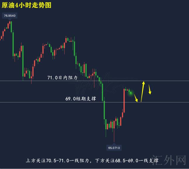 回弹70.5-71.0左右买跌,止损0.5美金,计划看69.0-69.5左右;