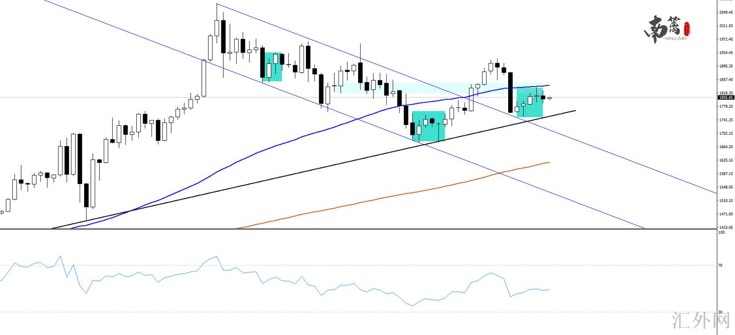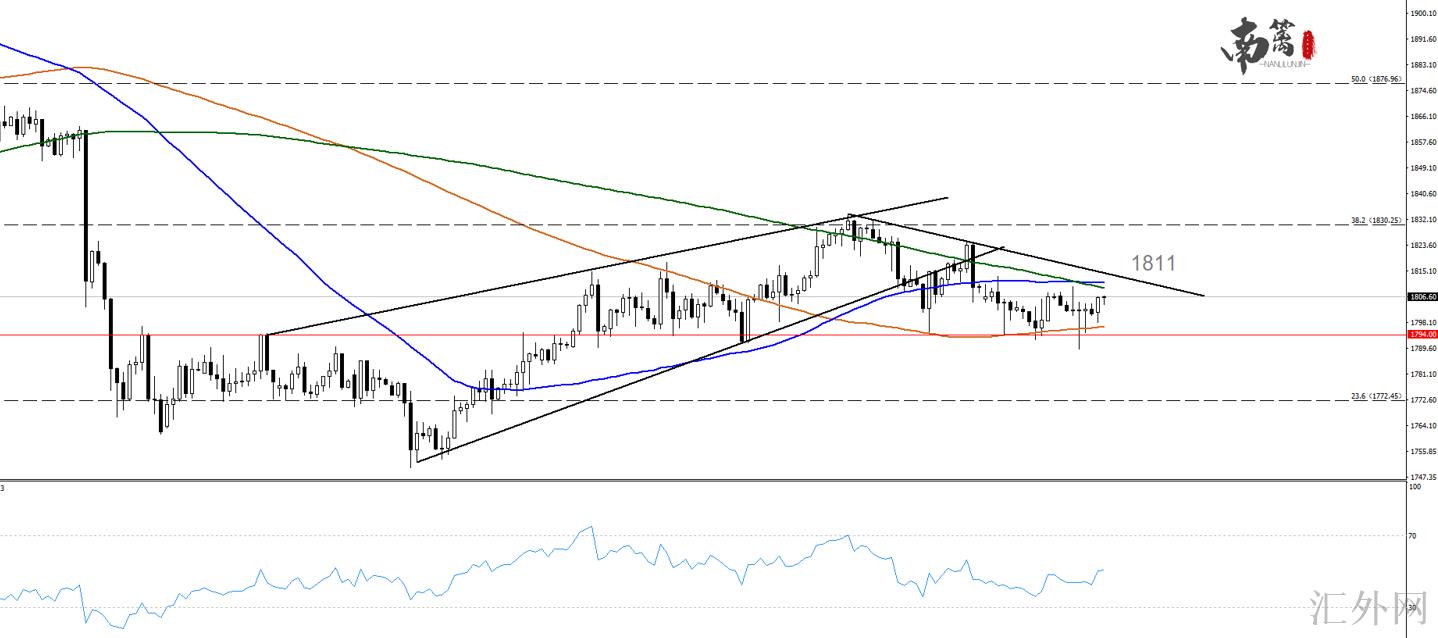 日间思路上,短线回弹点位依次下探到1812附近,支撑的关注点逐渐右移到1792的争夺,在跌落后小时图中黄金的“顶部”构造完毕,继而注意1772附近的着重支撑即可,周期联动易显现新低场面。