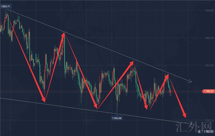 黄金形成下滑三角形行情,水平支撑点在1790,压力位则是1834-1825-1811的下滑趋势线位置,在1808左右。在美联储利率会议前,价格很或许在1790-1808区间震荡盘整,不能着急追涨杀跌,而是高空低多布局,止盈计划均目睹1800左右即可。