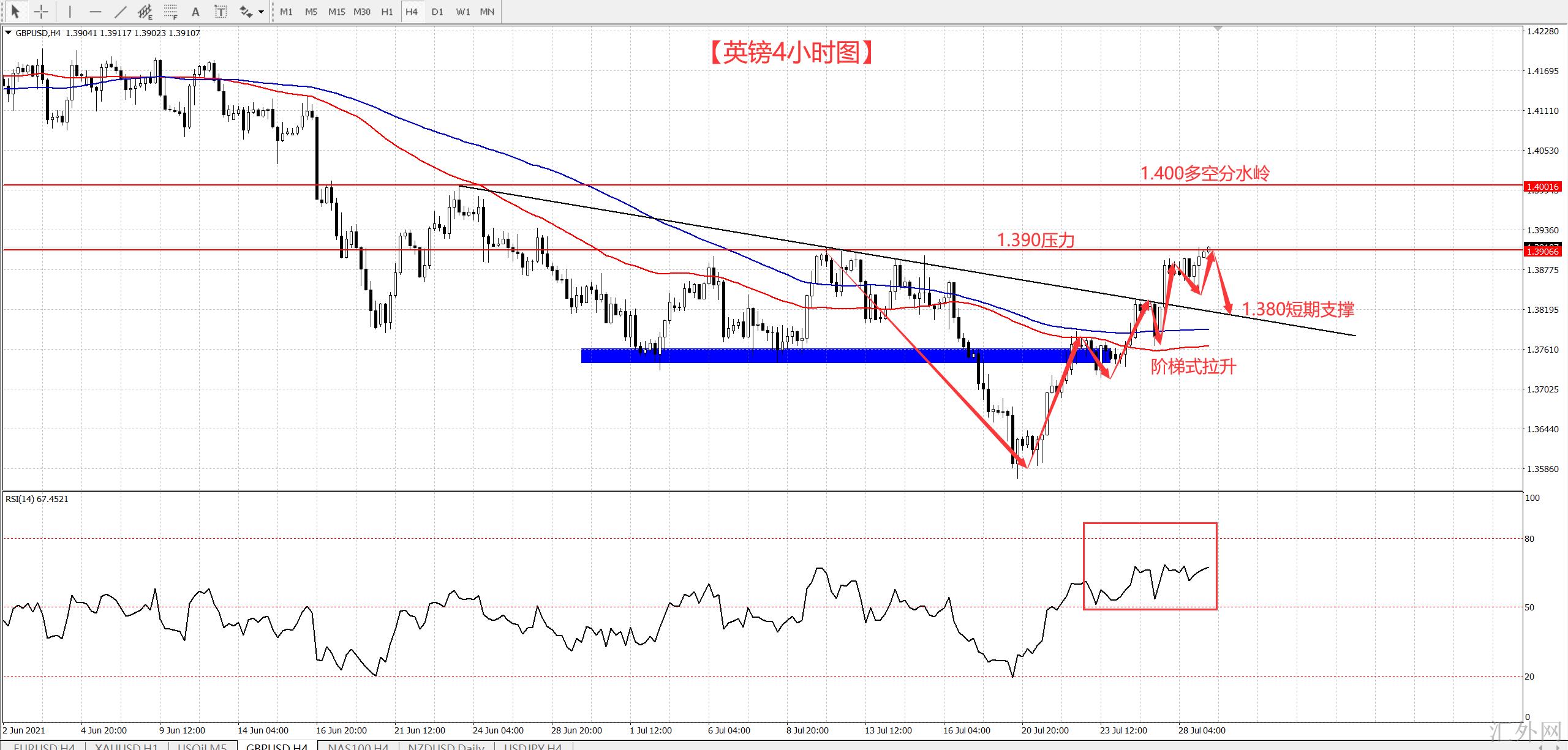 英镑4小时图: