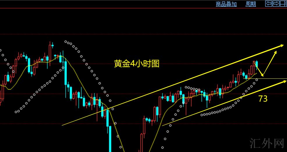 第一:原油买方强劲星期五价格又一次持稳日线图布林带中轨上方,日线图形成三连阳的强劲买方局势,大趋势看多运行,方向已经确定,回踩顺势多即可。当前价格处在上涨通道内运行,风险偏好改观供应支撑,4小时图SAR反转指标往上运行,支撑注意72.5-73左右。
