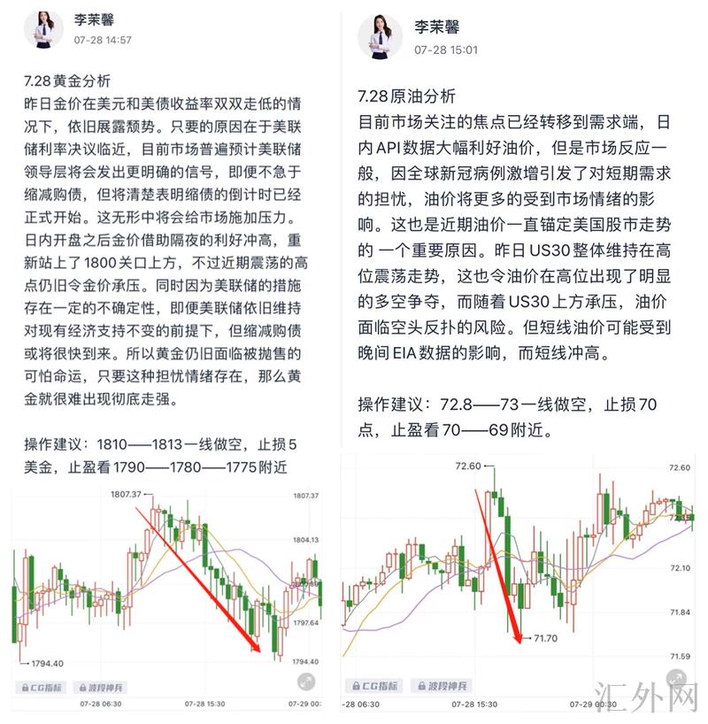 星期三茉馨原油黄金看跌思路皆是完美验证,但可惜的是距离策略切入位有所偏差,盘中也因有事耽误仍未能给到进场。