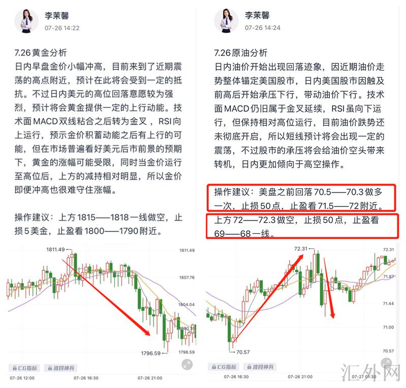 星期二黄金茉馨先驱看回弹思路然而未能给到切入位,但刚好刷新到空单切入位1805一线,成功获利差不多10点利润;此外日间原油白盘也给到了最高点72现价空单,最大获利也有差不多10点利润!(止盈15点)