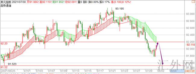 为何这么说呢,由于当前从美元4小时这里来说,上方抑制点就在92.1-92.2这里。