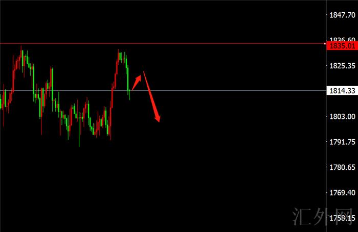 交易参考:回弹1823——1825一线买跌,止损5美金,止盈看1800——1795一线;