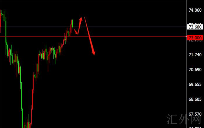 交易参考:星期一73一线先驱短多一次,止损50点,止盈看74左右