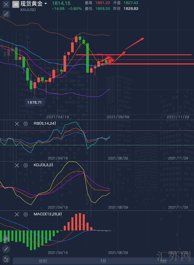 黄金下周操作策略:1、回踩1808左右买涨;2、回弹1834左右买跌!