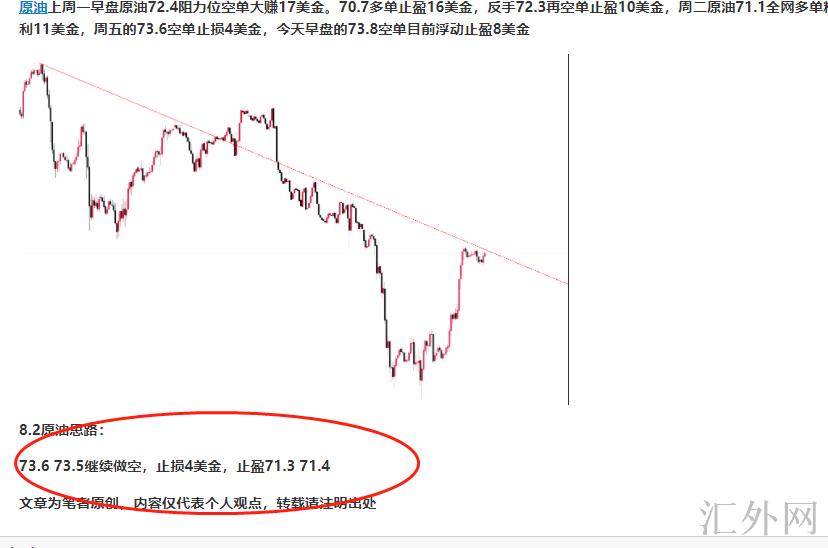 原油昨天的73.8空单一路痛跌到71.2止盈,全网提示,方向清晰震撼。星期二再次全网72.0一线买跌,原油卖方又一次下挫25美金之多,两高手单封神