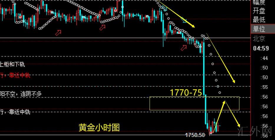 星期五在非农数据公布后,黄金接连遭受巨量抛单砸盘,该种情形不带止损操作,一旦参与多就会有爆仓风险,在消息面影响下技术分析无懈可击,黄金暴跌40美元最低刷新1758一线,收盘在1764左右,整个下挫过程中差不多无回弹,非农就业报告致使市场预计美联储恐会提早宣称缩表规划提升美元有好处空头黄金,价格显现大周期的向朝下击穿位,整体趋势空。