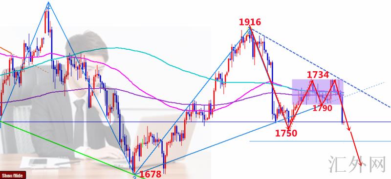 黄金前期依托1678W底面临了接连性的上涨,最高冲到1916名置遇阻,随后震荡崩盘回调到1750关键点位。从小波浪来说,1916—1750属于下探1浪,而1750—1735则显现123形态调动浪,在非农就业报告大幅有好处空头的刺激下一举跌穿1790这个前期震荡区间底部,卖方增速下探面临了大幅回调,日间降幅将差不多50余点最低到1758名置。李鸿彬在以前文章就提到过,若是黄金跌穿1798这个1678—1750这个上涨趋势线位置和1790核心支撑区,卖方将令如虎添翼并增速下探,果不其然黄金行情和预计统一,在星期一亚盘黄金面临了超幅下跌趋势,一举跌穿1750核心支撑到1680左右,超跌80余点,其下跌趋势的确让人惊艳!超跌后的回弹也难以小觑,很容易显现走妖过山车行情,但是卖方趋势已经很显著了,核心就是在哪布局空的困难了,从日K线来说布林下缘朝下开口,MA5-MA10死叉下探,前低1750就是当下需求关注的阻力点,从底顶转换来说此位置预计具有大批卖方抑制,所以回弹1745-1750可以开始布局空看保持下探。