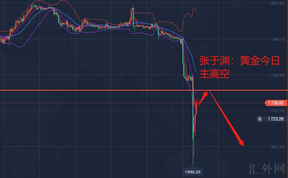 黄金亚盘开盘后直线下挫到1680日K线前低点置,上周我们从1817干空拿下七连胜,接下去回弹依旧持续空,依托亚盘1750阻力回弹空!黄金目前显著的下跌趋势,加上亚盘抛压引起流动不足,引起砸盘,但者然而是加快了下挫的节奏,黄金本质下挫趋势从上周就已经显著显现,这也是我们一直守在干空的原因!