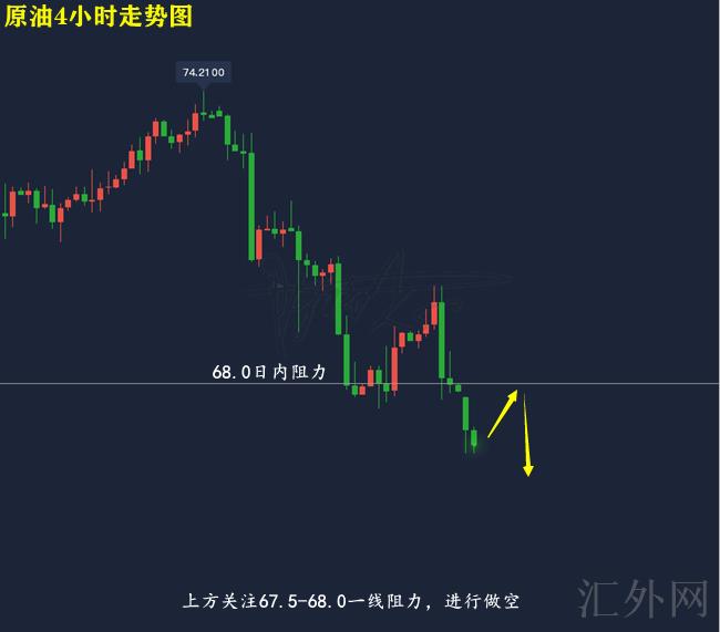 67.5-68.0左右买跌,止损0.5美金,计划看66.5-67.0左右;击穿则持续下看;
