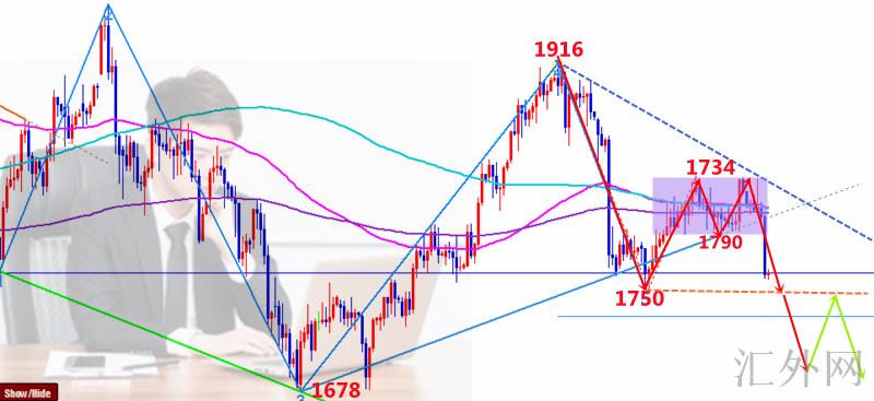 黄金前期依托1678W底面临了接连性的上涨,最高冲到1916名置遇阻,随后震荡崩盘回调到1750关键点位。从小波浪来说,1916—1750属于下探1浪,而1750—1735则显现123形态调动浪,在非农就业报告大幅有好处空头的刺激下一举跌穿1790这个前期震荡区间底部,卖方增速下探面临了大幅回调,日间降幅将差不多50余点最低到1758名置。李鸿彬在以前文章就提到过,若是黄金跌穿1790核心支撑区,卖方将令如虎添翼并增速下探,果不其然黄金行情和预计统一,在星期一亚盘黄金面临了超幅下跌趋势,一举跌穿1750核心支撑到1680左右,超跌80余点,其下跌趋势的确让人惊艳!超跌后的回弹也难以小觑,但是卖方趋势已经很显著了,核心就是在哪布局空的困难了,从日K线来说布林下缘朝下开口,MA5-MA10死叉下探,前低1750就是当下需求关注的阻力点,从底顶转换来说此位置预计具有大批卖方抑制,所以回弹1750可以开始布局空看保持下探。