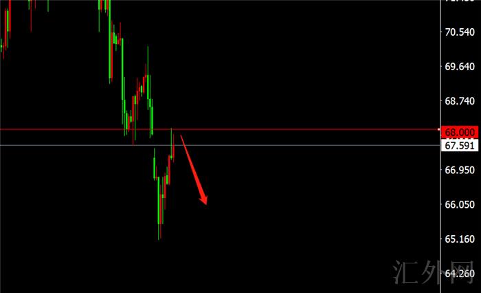交易参考:日间给出了67.5的空单,随后在68一线加仓买跌,当前已减仓一次,回弹持续进场,止损攀升到68.4,止盈看65——63左右;65突破后则空单更深一步下看。