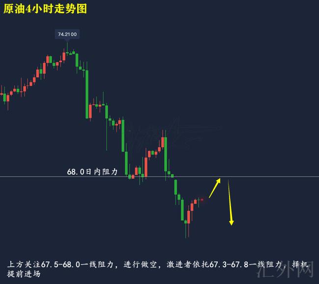 67.5-68.0左右买跌,止损0.5美金,计划看66.0-66.5左右;