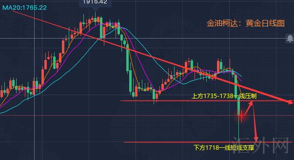上面分析图是当前的思路,我们预期仍有波回弹,上面的阻力分别是1738小阻力,1752-1757强阻力,支撑昨天下挫低位1723,强支撑1700,纪巧琳预期会有波小的回弹,回弹到1738-1745一带,1745是K线的密集区,这个位置不破在形态上就很难形成上探形态,所以这带是我们寻求买跌的可能。操作上金盛达推荐关注支撑1723-1725一线,突破注意1700一线支撑,关注短时间阻力1738一线、突破看1745-1749一线,强阻力1752-1757一线,操作上以回弹买跌为主。
