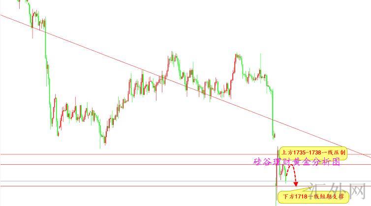 上面分析图是当前的思路,我们预期仍有波回弹,上面的阻力分别是1738小阻力,1752-1757强阻力,支撑昨天下挫低位1723,强支撑1700,硅谷理财预期会有波小的回弹,回弹到1738-1745一带,1745是K线的密集区,这个位置不破在形态上就很难形成上探形态,所以这带是我们寻求买跌的可能。操作上硅谷理财推荐关注支撑1723-1725一线,突破注意1700一线支撑,关注短时间阻力1738一线、突破看1745-1749一线,强阻力1752-1757一线,操作上以回弹买跌为主。