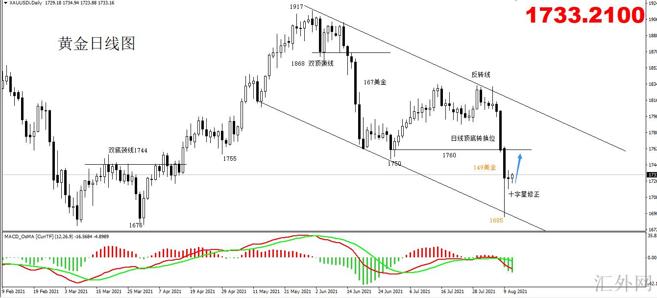 在星期一洗盘后面,昨天走了小的十字星修正行情,日K线当前有显著的止跌,下挫强度不足,对于日K线波段来说,大家只需求等候行情回弹终结的信号即可,时间预期较久,这周很难显现,更倾向在月末前后,这两天的行情注定不会很大,今天日K线能以阳线收录后,我们后市看的波段空单入场位置到达的几率将于75%,波段依旧注意1768-1785区间的空单机会,下看1600,日K线长期看跌不便,导致需求谨记第二段的波段下挫到位后,面对调动的局势。