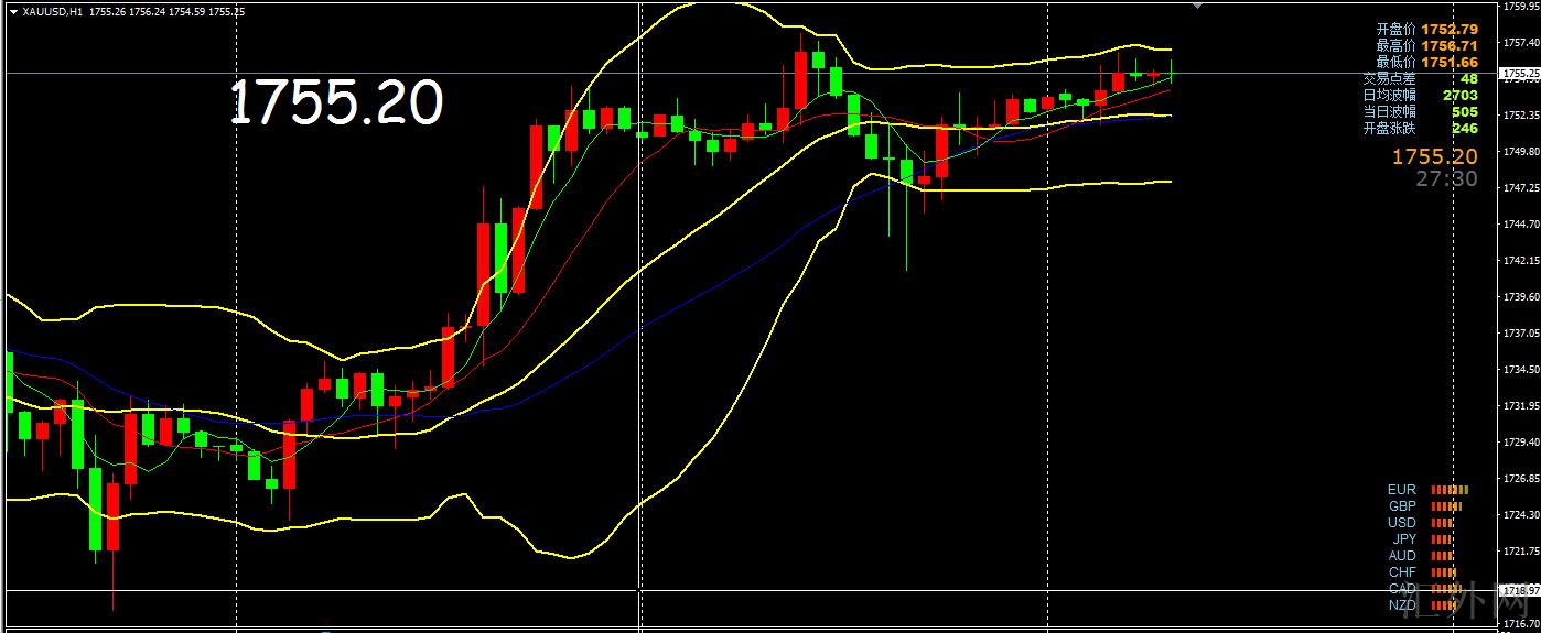 黄金昨日先扬后抑再收盘持平,日K线最终收出小震荡十字星K线,行情深陷了无趋势的宽幅洗横盘理中,然而昨日夜里价格适当修正后又一次推涨,显示买方依旧占领首要优势,而且在此之前1830区域三重顶形成的下挫,当前已回弹逼差不多50%左右,再加之昨天收阳线,所以黄金价格今日一定不会暴跌,从交易角度讲,大部分情形下小周期的支持就是用来跌穿的,阻力就是用来击穿的,或许行情会在这里执行往上推涨,所以今日操作上推荐看震荡回弹,空缺阻力1765下仍未回补,这是今天的第一计划!