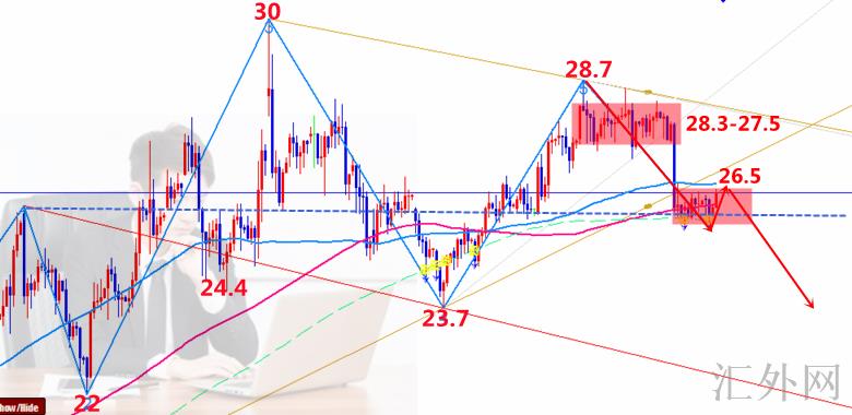 白银冲顶29关键点位遇阻显现大幅回调,跌穿27关键点位呈阶梯式下探,这周初受非农刺激,白银显现闪崩下跌趋势,一举创下今年新低到22关键点位,下跌趋势尤为惊艳!而关注李鸿彬的朋友都知道,白银最近均为回弹高空思路,在25.5—26.5区间震荡的时机就布局了26.5空的策略,在24.5回弹到26的时机又一次布局26空,均为完美布局震荡回弹的高点。当下下跌趋势更深一步扩大,那么操作上就是维持高空思路,顺势而为。上方回弹注意24左右空,预计下跌趋势也会保持,这周尾或许不会显现太大的动作,导致个回弹修正的过程。