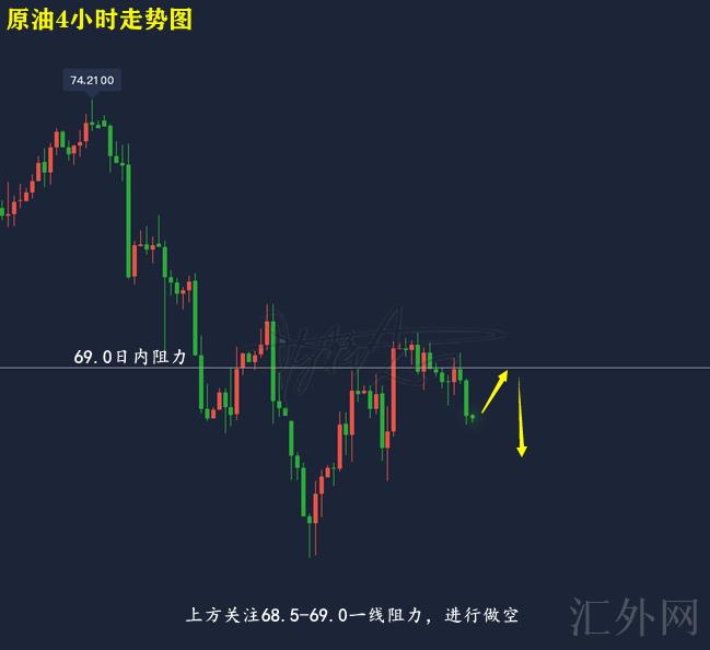 原油层面,中午时候给出68.7买跌,68.1出场,获利6个点;午间行情又一次上到68.7-68.8持续买跌,68.3出场,获利4-5个点;同样当行情又一次上到68.9-69.0持续买跌,68.2出场,获利7-8个点。