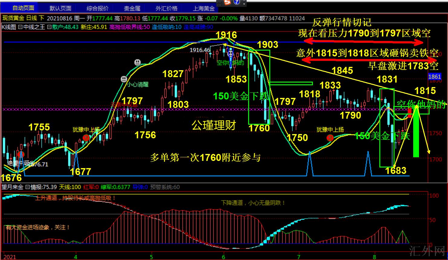2.黄金1770左右买涨,止损1765,计划先看,计划先看1790一线,突破持有