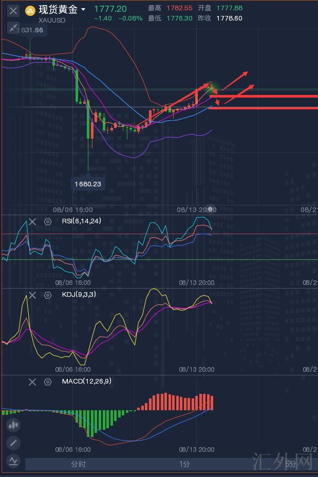 8.16黄金策略:1、稳健者1770-1775买涨;2、稳健者1790左右买跌!