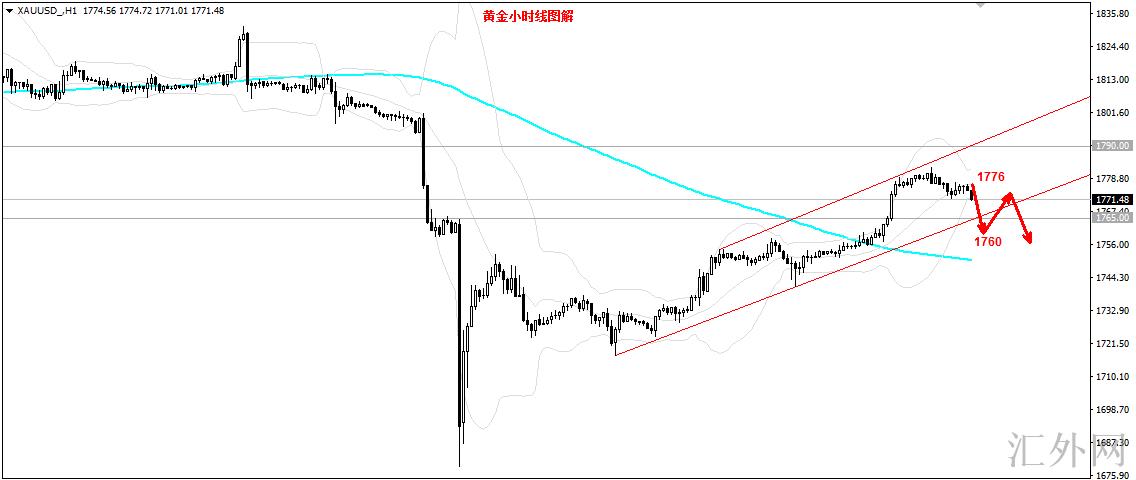 黄金亚盘遭遇阻力1782,欧盘回调在1771上震荡,反复上探仍未刷新高峰,买方缺乏保持性。笔者1771上多单1776先驱退场,反手放空。