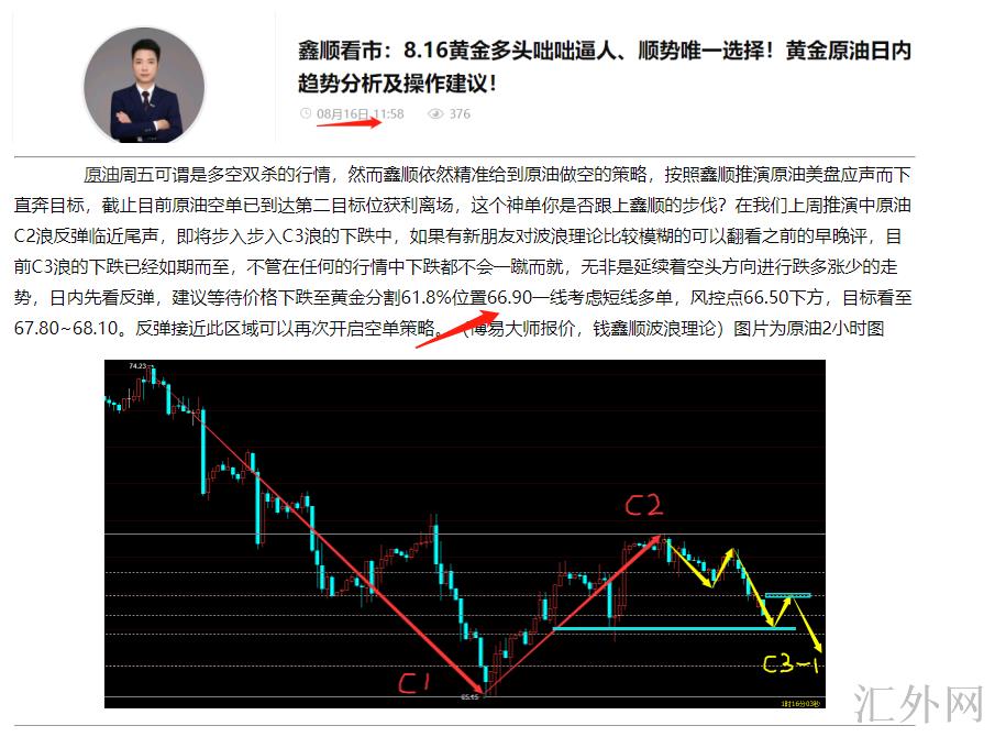 原油层面:鑫顺看市8.13晚-原油波浪神级推演,回弹只为高台跳水!午间布局多单66.9止盈你跟上了吗?附夜里交易参考